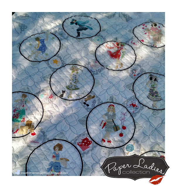 As you remember, this one I fashioned after Madame Samm's girls, and it has got to be one of my favorite quilts of all. A whole year of absolute bliss is stitched into this quilt...